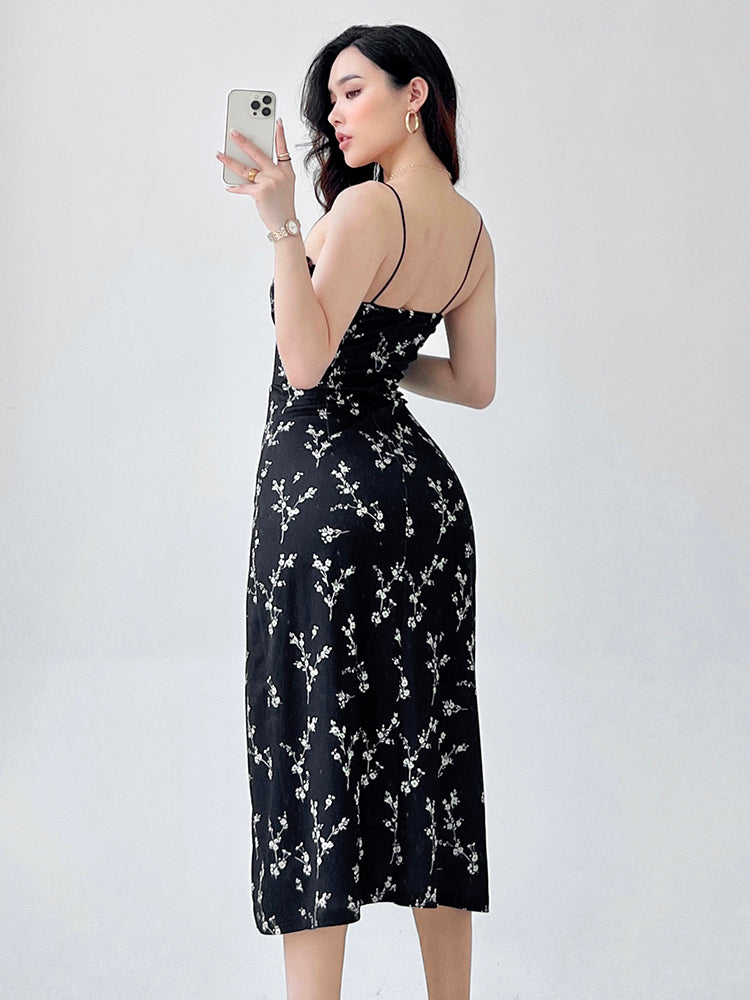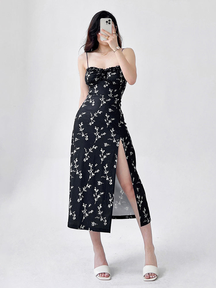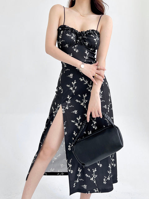 • WannaThis Sexy Y2K Slip Dresses Summer Women Floral Print Sleeveless High Split Evening Elegant Party Streetwear Casual Clothing