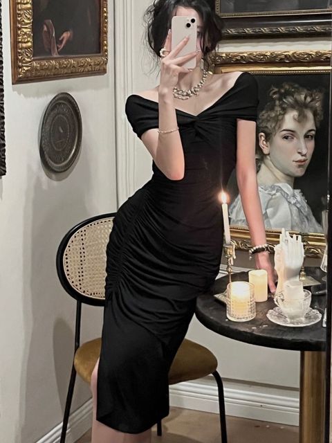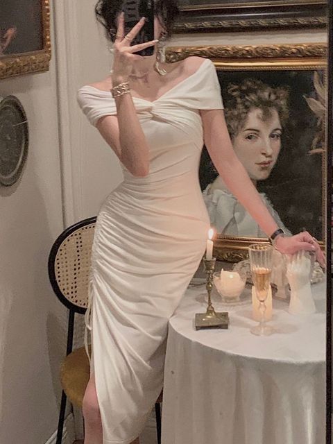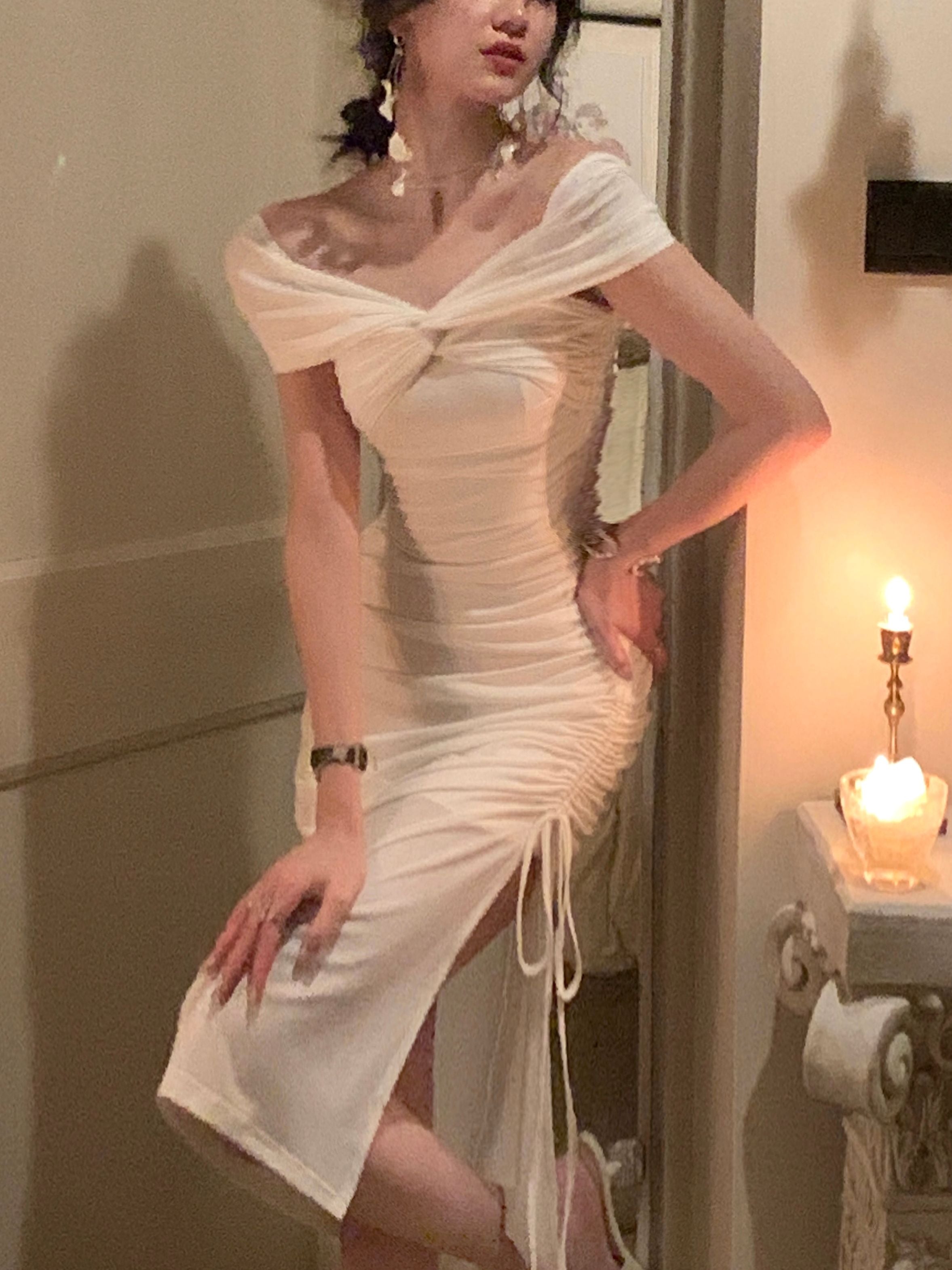 • Summer Elegant Off Shoulder Midi Dress Women Sexy Prom Evening Bodycon Party Birthday Club Fashion Clothing